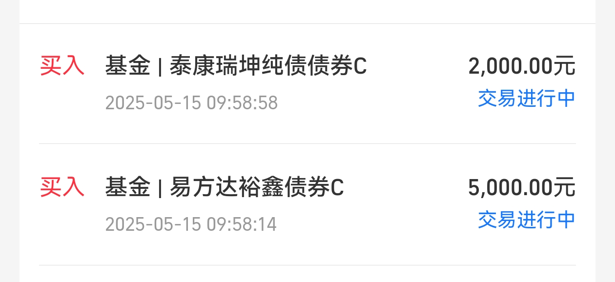 加仓$易方达裕鑫债券C(OTCFUND|003134)$5000