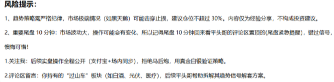 我主打的是真实、量化、可验证。行情再乱,总有策略能盈利(择时策略+趋势策略);市场再差,总有纪律(止损止盈)保命。关注我!用真金白银展示震荡市生存法则,每天下午2点不见不散!