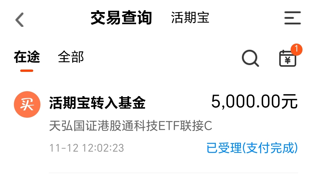 今天我买入$天弘国证港股通科技ETF联接C(OTCFUND|024886)$5000块钱。