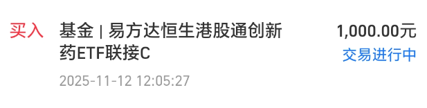 今天我买入$易方达恒生港股通创新药ETF联接发起式C(OTCFUND|024329)$1000块钱。