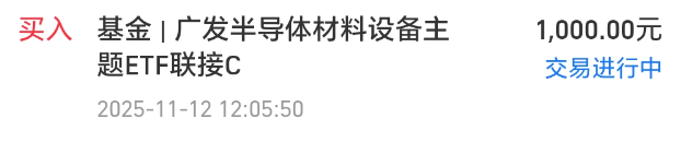 今天我买入$广发中证半导体材料设备ETF发起式联接C(OTCFUND|020640)$1000块钱。