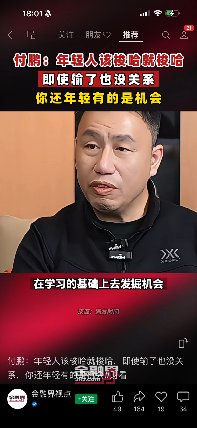 付鹏的“梭哈论”如果被正确理解,其实是鼓励年轻人在充分准备的基础上勇敢行动,利用时间优势承担适度风险。但这绝不等于提倡盲目赌博或情绪化决策。