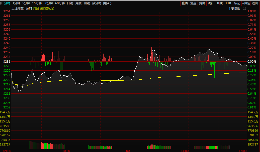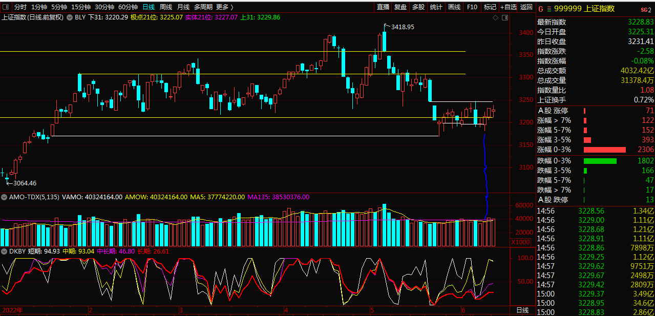 沪指早盘反复夯实3213支撑线,午后两次冲击3238附近未果回落。最终以3228.83收盘,报收(假)阳中字星,成交量缩为4032.42亿元.