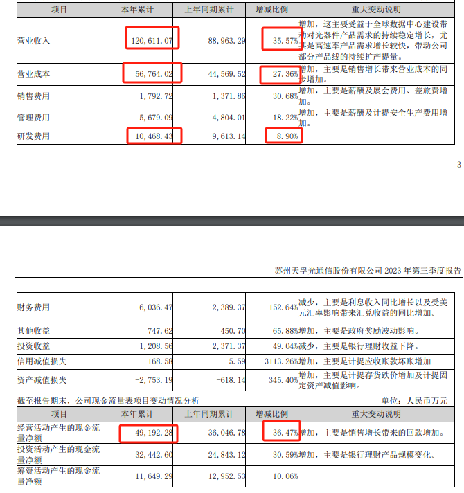2023年前三季度营收约12.06亿元,同比增加35.57%;归属于上市公司股东的净利润约4.39亿元,同比增加58.42%;基本每股收益1.1132元,同比增加57.19%。