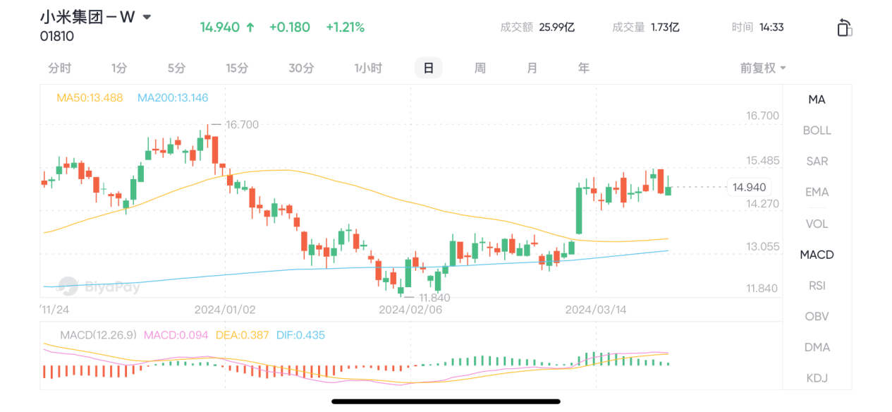 小米集团-W(股票代码01810)图片来源:BiyaPay