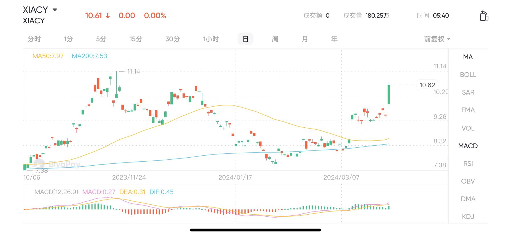 3月28日,小米集团-W(股票代码01810),小米集团ADR(股票代码 XIACY)持续拉升,涨幅扩大至12%。