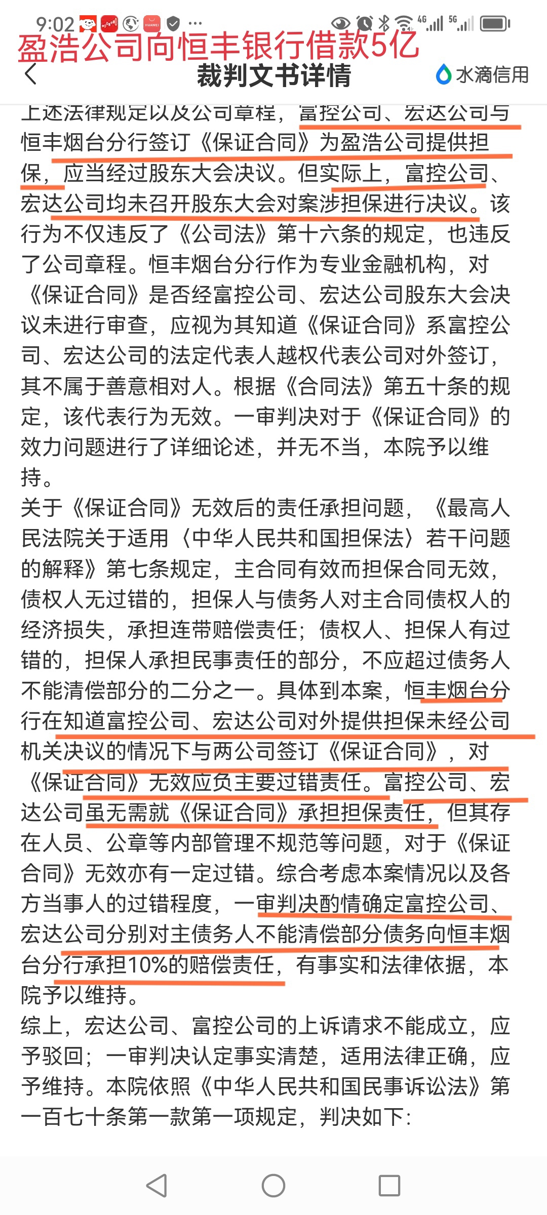 二、原未来控股股东中技集团控股子公司盈浩公司向恒丰银行借款5亿未能归还全部本息,未来智慧医疗公司要承担10%的连带清偿责任,此案法院已经终本。