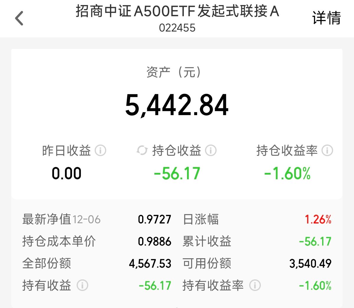 指数,我配置$招商中证A500ETF发起式联接A(OTCFUND|022455)$1000元,该基金是已经打开申赎的A500基金,现在直接可以看到净值表现了,会每天披露业绩,我趁着今日估值回调继续布局一份。我是比较看好该基金,A500被称为下一个宽基门面是有道理的,因为A500有质地更好、代表性强、更均衡、更国际化等优势,因此具备更强的可投资性和潜力。不仅如此,该指数中先进制造、信息技术行业权重相比沪深300指数提升,金融、主要消费行业权重占比显著降低,体现新质生产力特征。并且今年以来市场上的利好措施不断的出现,当前市场的估值又是整体比较合理的,资金很可能在临近春节时候发动一波行情,今天我继续配置做多了。