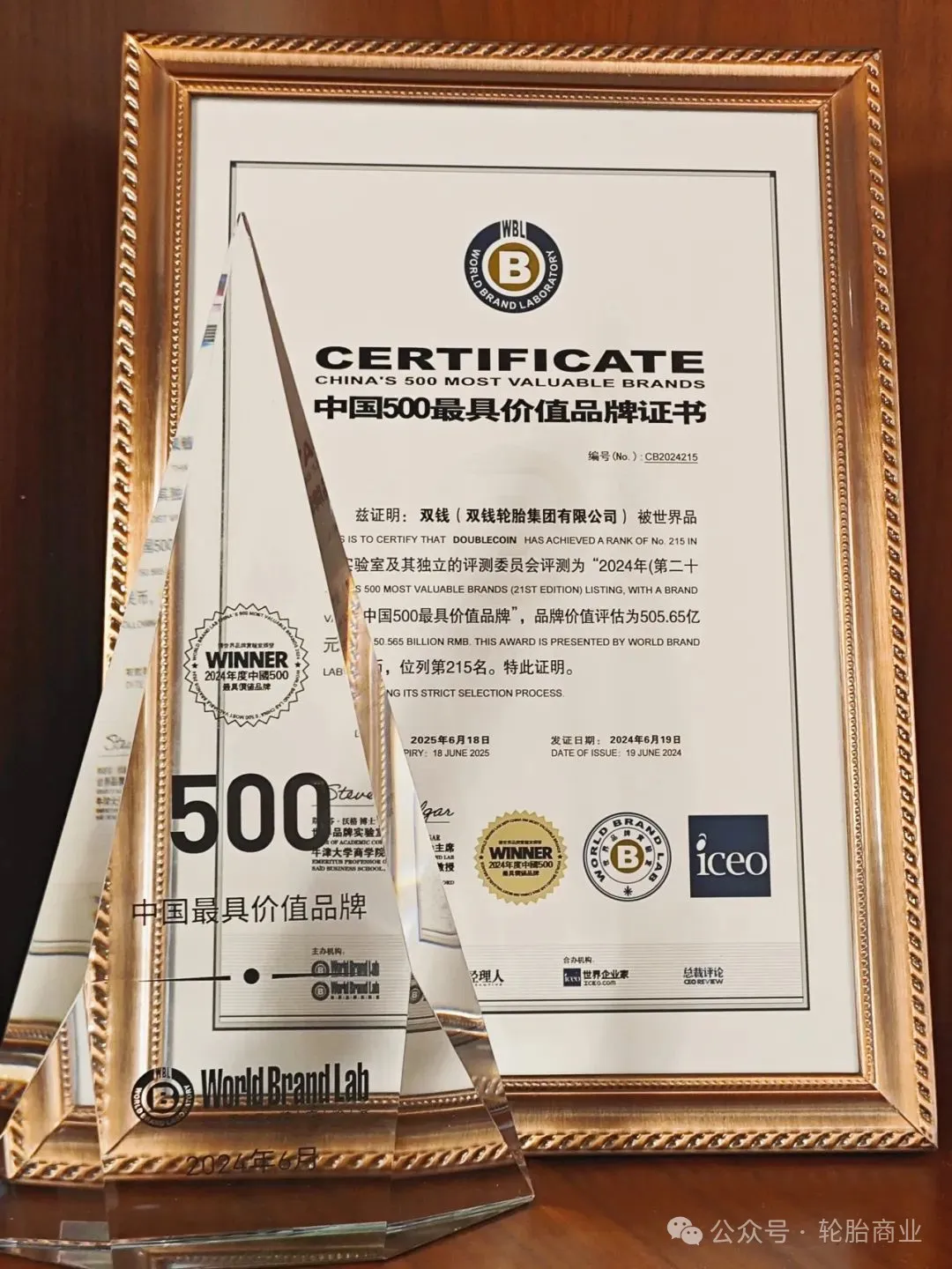 在第21届世界品牌大会中,双钱轮胎以505.65亿元的品牌价值荣登215位,品牌价值提升68亿元,双钱的技术创新实力再一次得到权威认证。