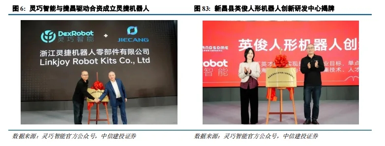 灵巧智能积极推动产业合作。2024年9月18日,灵巧智能与捷昌驱动共同出资设立浙江灵捷机器人零部件有限公司,其中灵巧智能出资570万元,持股57%,捷昌驱动出资430万元,持股43%。该公司主要从事机器人灵巧手关节模组、空心杯电机、微传动部件及电机驱动器等关键零部件的研发生产制造销售。2024年10月29日,公司在2024秋季发布会上宣布新昌县英俊人形机器人创新研发中心正式揭牌,该中心专注于人形机器人技术创新与产业孵化,旨在与全国各高校共建共享,聚焦人形机器人前沿技术和核心问题,致力于通用机器人的关键技术和部件的技术攻关,通过形成一系列具有自主知识产权的创新成果,来打造创新研发中心具有核心竞争力的产品谱系。