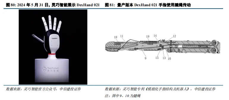 公司成立一年内即推出量产版灵巧手产品。2024年5月31日,在新昌科技日活动中,灵巧智能展示了具有18自由度的智能通用工业级五指灵巧手DexHand021,该灵巧手具备5种多模态感知能力、高度集成的智能系统,兼具易维护、强兼容和低功耗的特性,主要面向工业自动化、医疗辅助、科研探索等领域。2024年10月29日,公司举办“灵心启智能巧手创未来”2024秋季发布会,宣布量产版本灵巧手DexHand021开启全球发售。量产版本DexHand021有15个关节,自重1千克,负载5千克,具备19个自由度和23传感器,使用腱绳传动,发售时市场指导价9.6万元,其中首批50只体验价6.8万元。