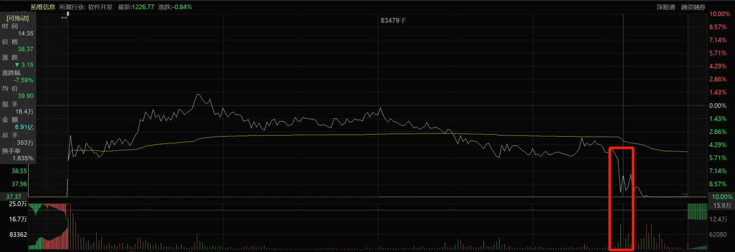 尾盘$拓维信息(SZ002261)$的这个跌停是我没想到的,因为这个一直是这波DS概念的核心容量,而且看分时就知道一直有大资金维护的,结果尾盘瞬间10亿左右的砸盘,市场反抗了一下,然后就跌停了。