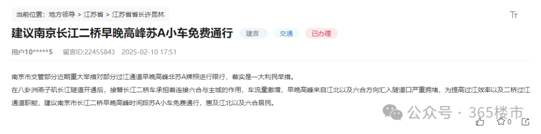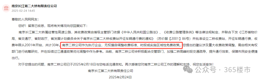 就在最近,有网友针对燕子矶长江隧道通车辆大的问题,咨询官方长江二桥早高峰能否对苏A小车免费通行。
