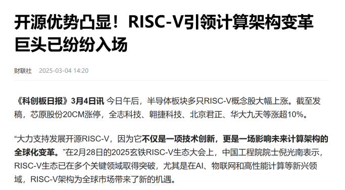 昨天午后,半导体板块异动拉升,消息面上RISC-V芯片应用受到关注。RISC-V架构作为全球三大指令集架构之一,以其开源免费、设计灵活、低功耗等优势,正在迅速崛起。