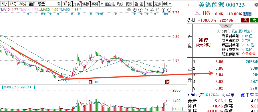 周四煤炭集体逆势拉升,板块异动非常明显。在前两天就预判高位股回调切入到低价股,逻辑是没有错,但方向上有偏差,看好的旅游股曲江文旅只是小幅上涨。煤炭股目前的优势是股价低,业绩好。前期调整非常充分,股价都是几块钱,市值也不高,是比较容易受游资的关注。美锦能源在本周一已经开始异动了,提前于板块启动的。昨日也是最先涨停板,并带动了其它个股上涨,毫无疑问是本轮煤炭的龙头。公司最大的亮点是拥有从煤炭,到焦炭,天然气,氢燃料电池汽车的完全产业链。特别是在氢能源电池汽车这方面它的技术优势最明显的。融入的题材也比较多,有氢能源汽车,无人驾驶,机器人等。在历史上,每次煤炭行情异动它都是龙头,股性最活跃。技术上,经过了三年多的下跌,股价已经是严重偏低。近期再次上涨,已经形成了大双底结构,大底部信号越来越明显。因为脱离了5日线,早盘如果是低开或者高开比较小,盘中回调依然还是低吸时机。
