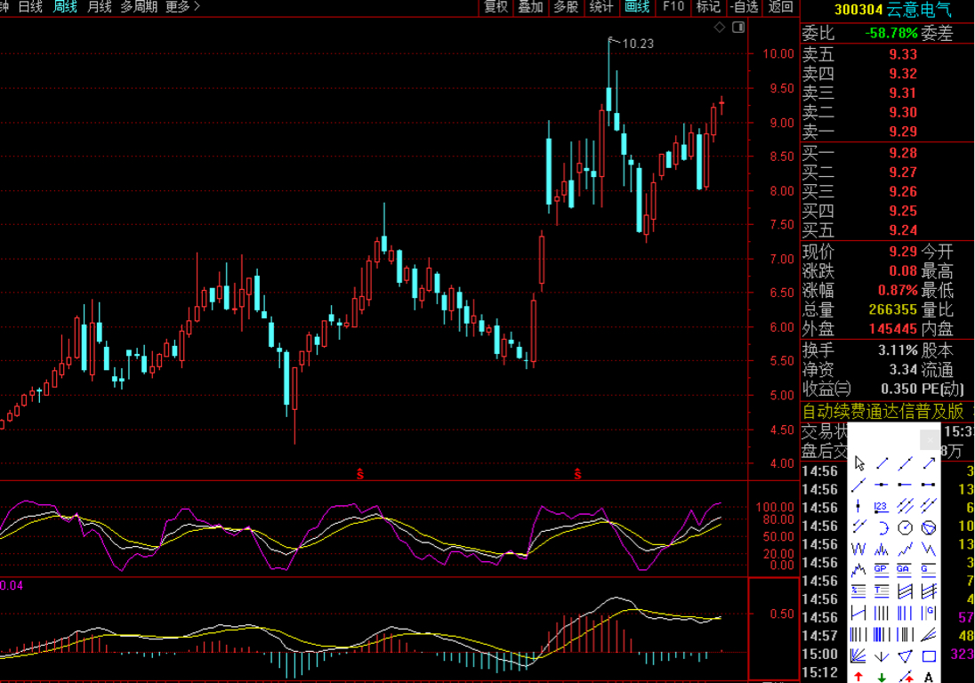来看看另一个周线指标,这个指标就是MACD,我们可以看到,周线Macd已经在0轴之上已经出现金叉,并且出现红柱,只要明后两天不出现大的意外,这个红柱就不会消失,自己可以去看看云意在周线0轴之上金叉出现红柱后,后面至少有两周涨幅的,可以自己去看看最近的周线macd金叉之后的走势参考,最近一次周线macd金叉,kdj同样也是高位钝化的情况,周线macd 0轴之上金叉之后,上涨了3-4周,这些都是可以去观察的,很多人又说指标没用,我只能说无语了,有些人玩股票多年没什么长进是有原因的,永远不会去结合k线指标做分析,他们总是说指标没用,主力画给你看的,这么没用,全世界的交易者甚至股神都在看,在你这里都叫“没用”,有的人靠运气,有的人靠的就是研究…运气不会一直好,但研究是真的可以成长的…