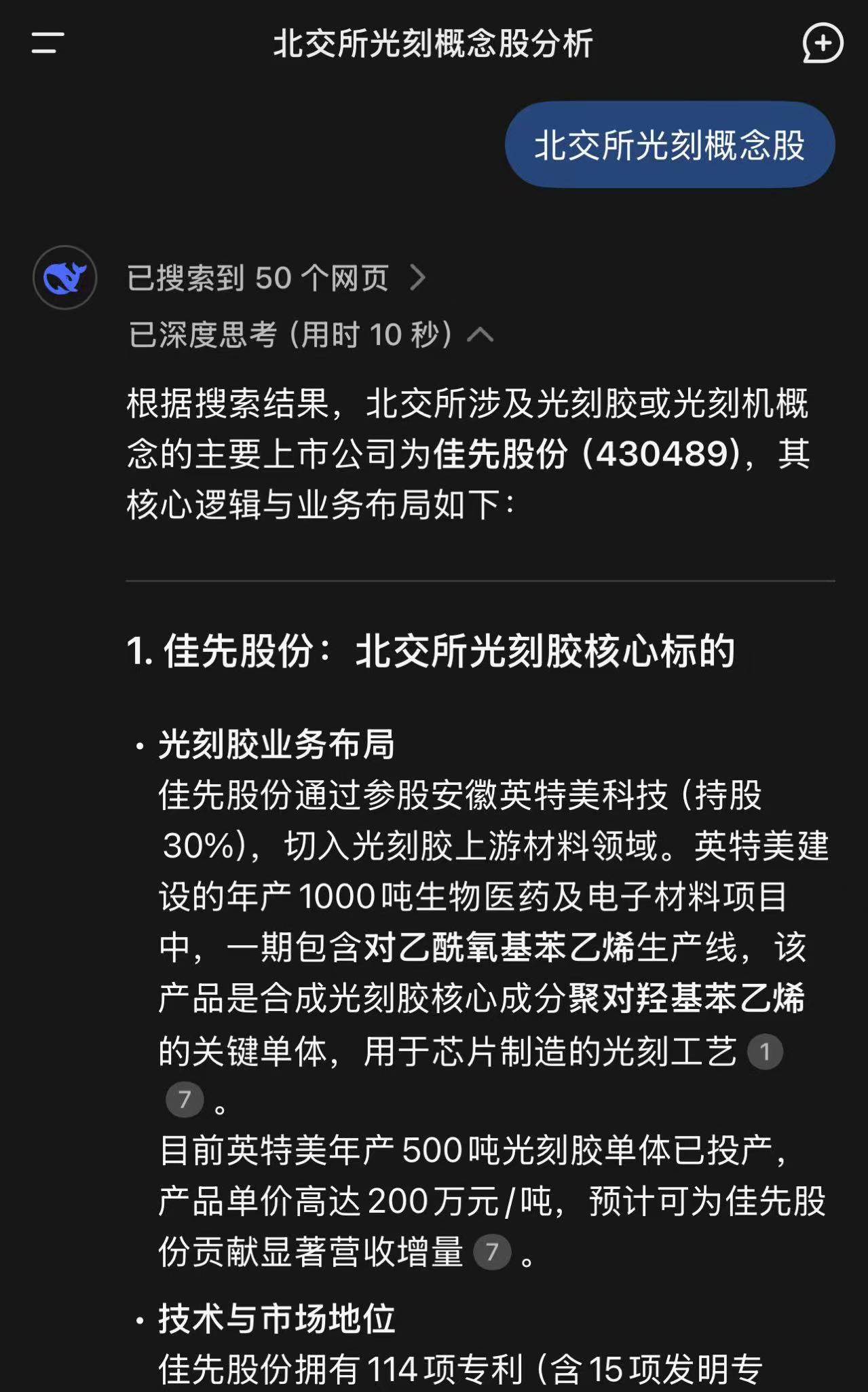 首先,无论你用哪个AI,结论都是一致的:北交所唯一确定的光刻概念是:佳先股份