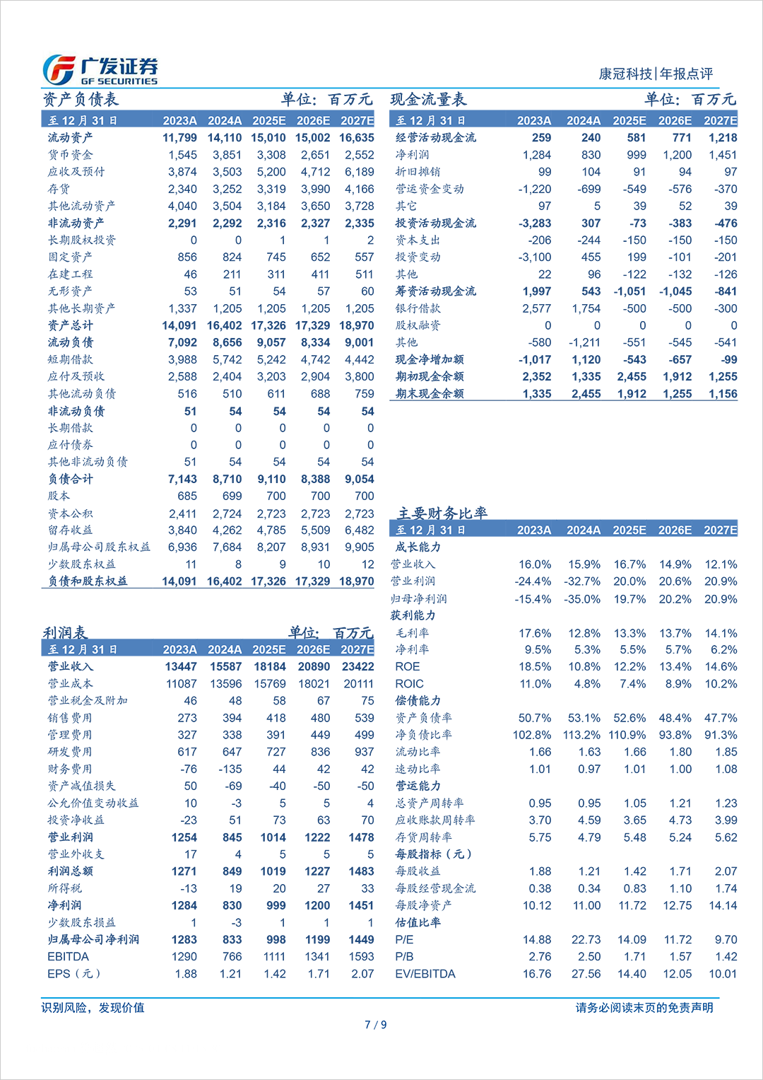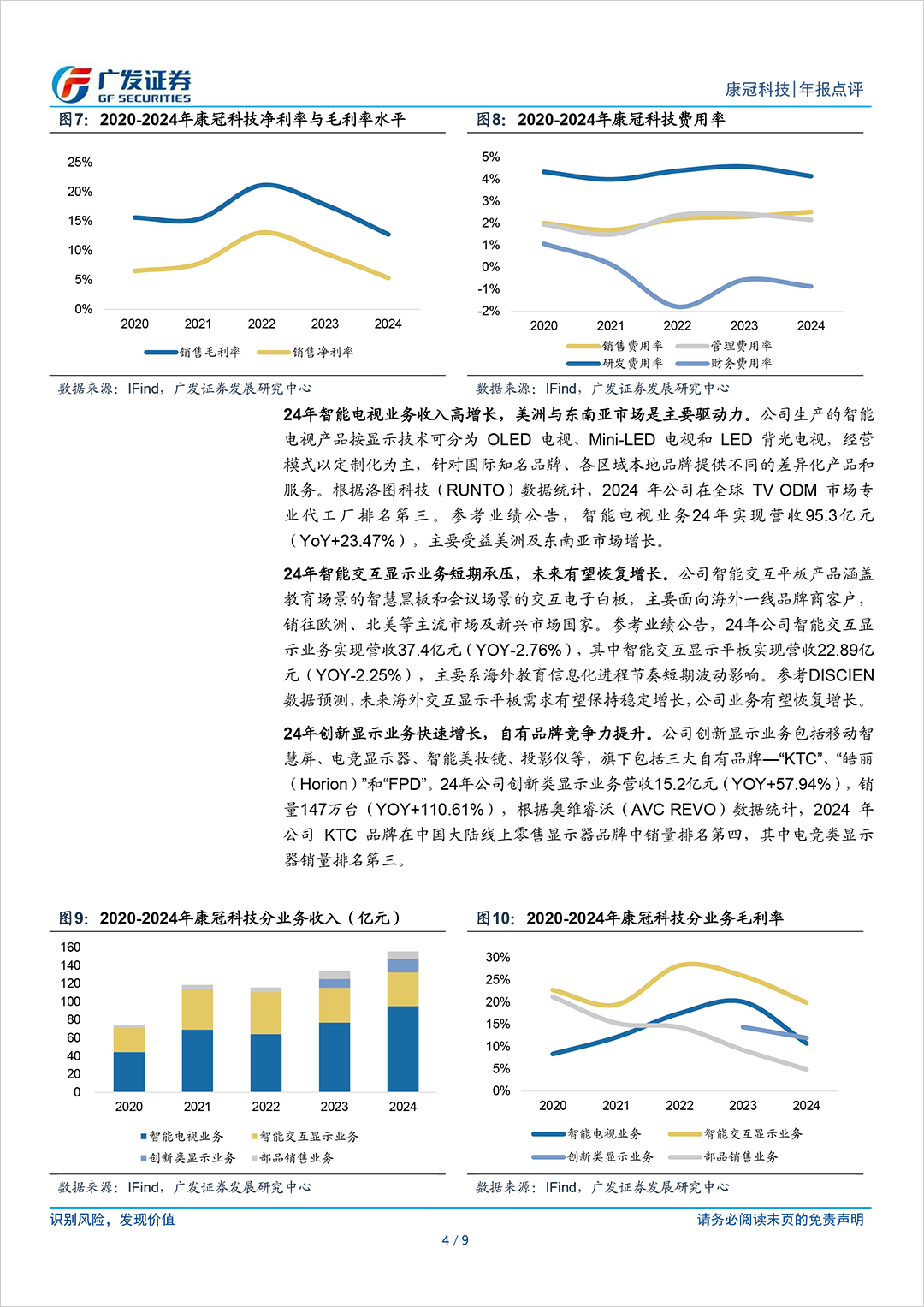 受面板涨价与客户结构变化影响,24年公司毛利率为12.8%(YOY-5.1pct)。费用方面,在培育期营销投入加大,销售/管理/研发/财务费用率为2.5%/2.2%/4.2%/-0.9%,同比+0.2pct/-0.3pct/-0.3pct/-0.4pct,净利率5.3%(YOY-4.2pct)。预计随着客户结构稳定与规模效应,主业毛利率有望回升。同时随着新业务培育成熟,费用投放也将有所缩减,未来盈利能力有望恢复。