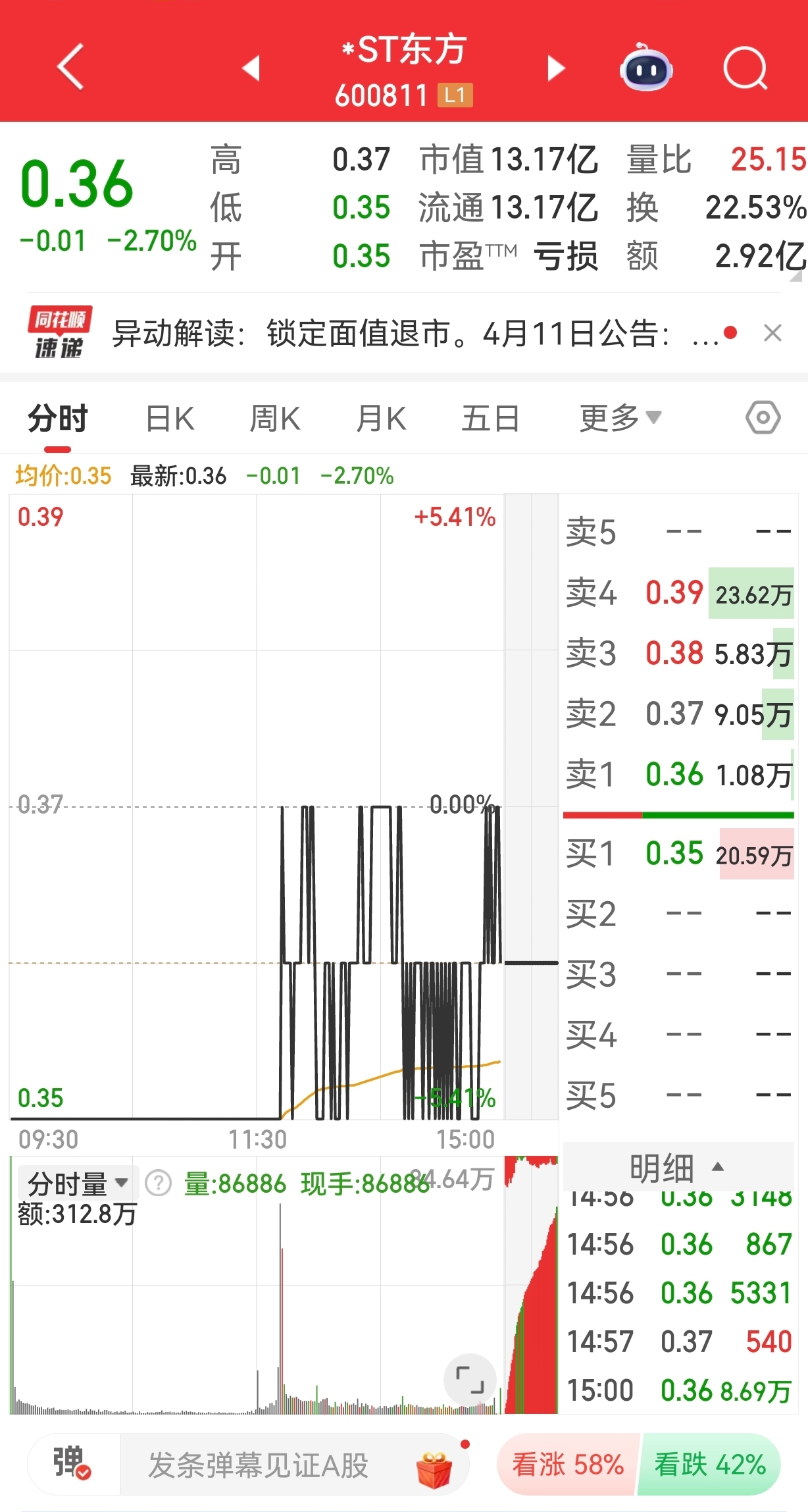 #股市怎么看# #炒股日记# $*ST东方(SH600811)$