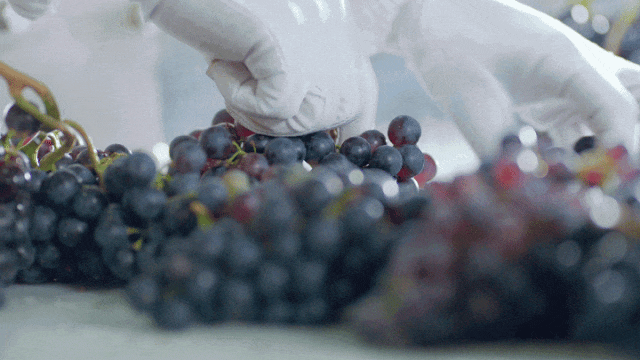 干红葡萄酒一般选用完全成熟的红葡萄品种进行采摘。威龙采用手工采摘能够更好地挑选葡萄,保证葡萄的品质。采摘后的葡萄经过筛选,去除破损、腐烂的葡萄,然后进行除梗、破碎、浸渍、发酵等步骤。