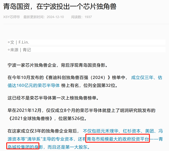 3. 荣芯半导体:160亿元估值,注册资本135亿,青岛国资委第一大股东