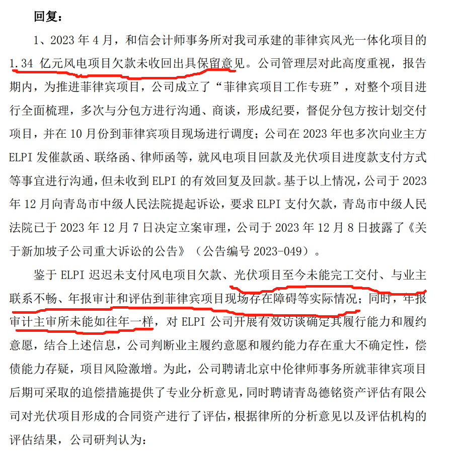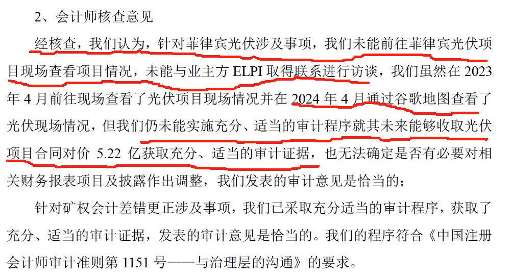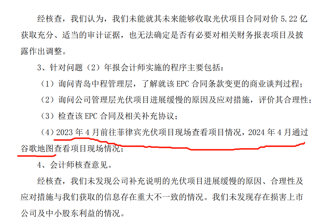 三要素已解决:净资产(最重要,已解决,预报中位数2.3亿)、营收>1亿(看业绩预报,中位数1.5亿)、审计,去年审计无法到达现场强调保留意见,今年审计已到达菲律宾现场1.7-1.12去了6天(看最新的审计公告和之前为啥出具保留意见,因为无法到达现场通过谷歌地图查看荒唐至极),6天时间应该是查清楚相关审计证据,否则不会这么快返回国内,下面这是内心独白(如果没有,那就再计提2个亿,按照上述还有0.3亿的净资产,但是这种概率非常小,因为23年已经计提了6.54亿,而且4季度也亏损了1.16亿后才有的2.3亿净资产,也就是说最大可计提2.3+1.16=3.46亿导致净资产为0,那菲律宾光伏账面只有1.8亿,概率非常小)插一句最近的xx在东南亚访问,印尼和菲应该会重视。