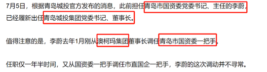1.青岛城投董事长李蔚,为澳柯玛集团创始人,调任青岛市国资委一把手之后一年(2024年7月5日)便出任青岛城投集团。说明城投在国资委的地位是相当大。李蔚的业绩我就不多说了,大家自行查阅,相当于现在来城投当救火英雄,中程退市他脸上还挂得住吗?
