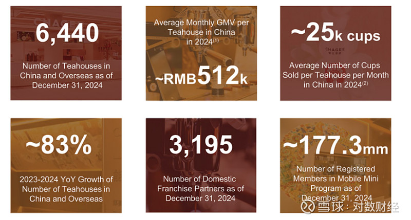 众所周知,霸王茶姬的加盟模式是其快速扩张的利器,根据招股书显示,截至2024 年底,其全球已有6440家门店,国内门店达6284家,相比于2023年底的3511家,增速达83.4%。其中97.4%为加盟店。