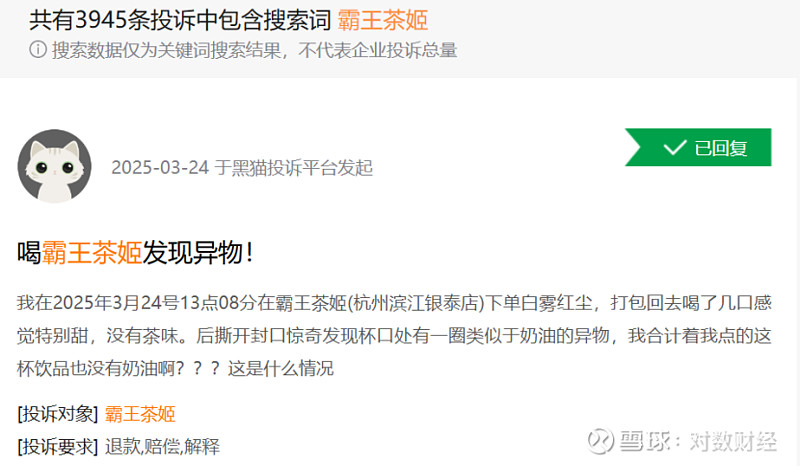 再加上品牌对加盟商的监管力度不足,导致产品质量和消费者体验参差不齐。截至目前,黑猫平台投诉达3945条,涉及异物混入等食品安全问题,以及对员工的投诉。若无法强化供应链管控与加盟商培训,此类隐患或将成为其全球化扩张的难点。