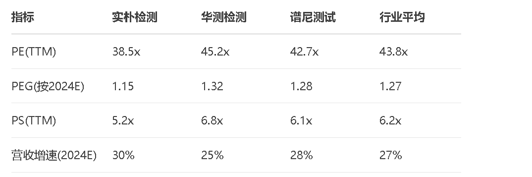 从比较可见,实朴检测当前估值水平略低于行业平均,考虑到其高于平均的预期增长率,估值具有一定吸引力。
