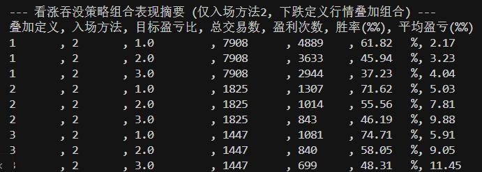 不卖关子,直接看数据(见图2)。大家可以看到,在叠加了入场过滤条件后,“看涨吞没’的实战表现可以得到显著改善。【叠加定义3+盈亏比1.0]这一组合,其胜率达到了74.71%!这意味着,通过精细化的条件设定,经典形态在A股的有效性是可以被“激活”的。