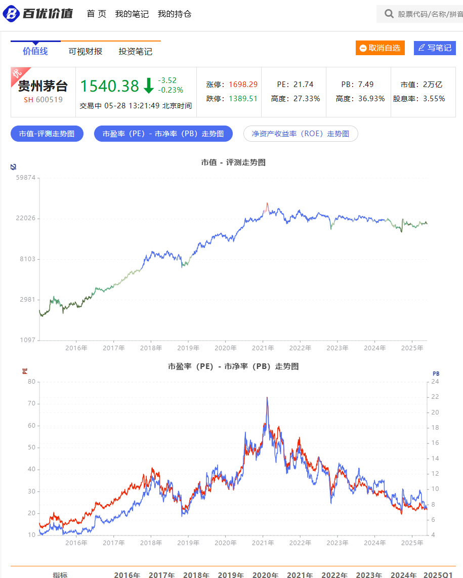 贵州茅台的价值线: