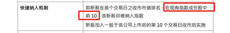 根据恒生指数公司的“快速纳入机制”,新上市公司若在上市首日(即首个交易日)收盘市值排名符合条件(通常为前10大),且满足流动性要求,可在上市后约10个交易日被纳入相关指数。
