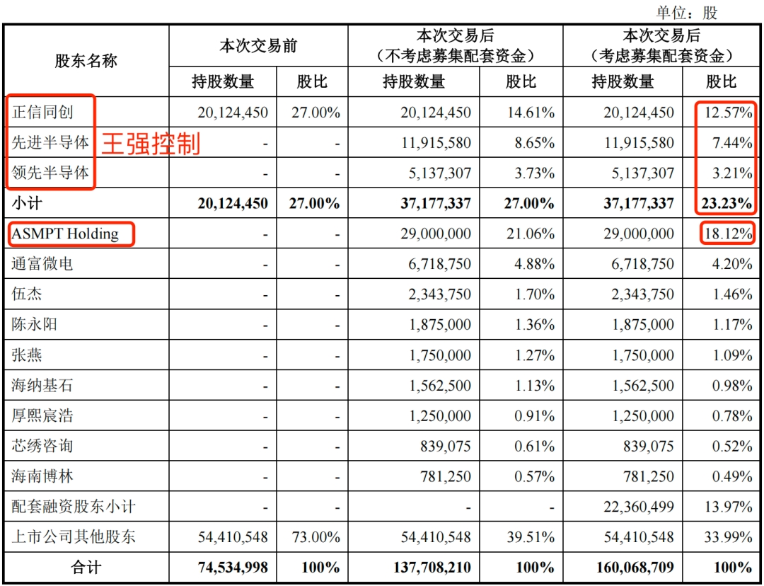 王强先生于2020年5月21日取得上市公司控制权,距本次交易上市公司停牌时间(2024年10月11日)已超过36个月。本次交易完成后,上市公司的实际控制人仍为王强先生,按配套融资发行22,360,499股测算,王强先生通过正信同创、先进半导体、领先半导体合计持有上市公司3,717.73万股股份,占届时上市公司总股本的23.23%,且ASMPT Holding占届时上市公司总股本的18.12%,其已出具《关于不谋求上市公司实际控制权的承诺》。因此,本次交易不会导致上市公司控制权发生变更。根据《重组管理办法》的相关规定,本次交易不构成重组上市。