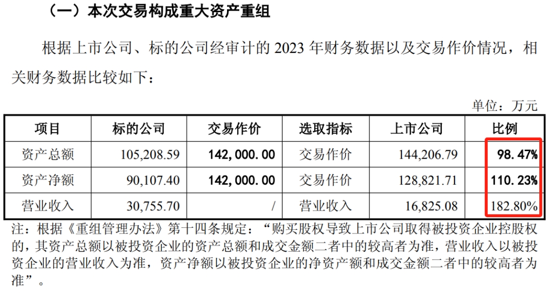 2024年双方营业收入指标之比已超过100%,本次交易采用现金支付,构成重大资产重组,但不构成重组上市。截至2025年5月26日,本次收购仍在筹划阶段。