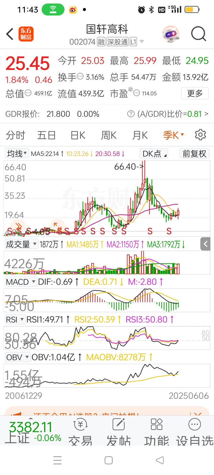 眼晴别盯着日线图和分时图,看看季线图,她已来到自07年上市以来的第三次大底位置,这个位置被套住,有什么可担心的呢?这个位置上季K己开始翘头,这个翘头大概率就是新的一大波上涨的起点,她上市18年来就上涨过2大波,平均8一9年走一大波,现在如果是新的一大波的起点区,机会是不是很难得,特值得珍惜?从日线图上去追己大涨了的热门股好呢还是逢低低吸潜伏国鲜这种低位股好呢?