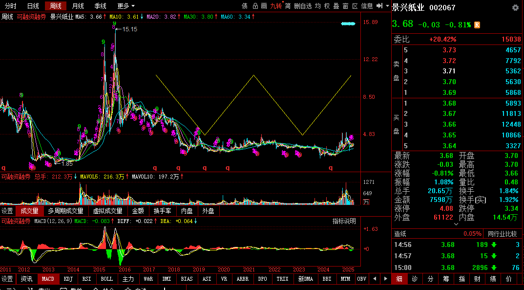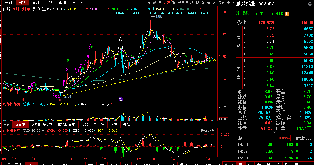 今天蛰龙同样不去热门帖吧分析,单独给景兴纸业进行详细的分析!
