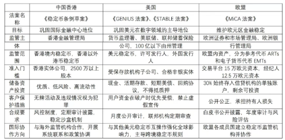 监管完善期(2024年至今):2025年5月19日,美国通过《GENIUS法案》,建立稳定币联邦监管框架,要求发行方持有100%高流动性储备(如短期美债)、定期审计并保障用户优先索偿权。欧盟24年4月20日则通过《加密资产市场法规》,即MiCA法规,将稳定币分为电子货币代币(EMTs)和资产参考代币(ARTs),要求发行方获取授权并公开储备信息,USDT因不合规被多家交易所下架,USDC等合规稳定币成为主流。2025年5月21日,香港立法会正式通过《稳定币条例草案》,5月30日,香港《稳定币条例》正式刊宪生效,指定25年8月1日为实施日期。法案要求发行方申领牌照并维持1:1储备,推动京东、渣打银行等机构推出港元稳定币,用于跨境贸易和供应链金融。