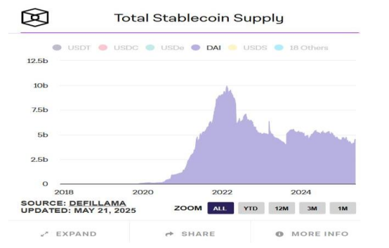 成长期(2018-2020):2018年USDT因储备争议引发信任危机,更透明的USDC诞生(由Circle发行),采用银行托管和每月审计机制,并获得纽约州牌照。同年,去中心化稳定币DAI上线,通过超额抵押ETH等资产实现稳定,开创了算法与抵押结合的模式。这一阶段监管开始介入,纽约州出台稳定币指导方针,要求发行方遵守反洗钱规则。到2020年“DeFi之夏”,稳定币市值从200亿美元飙升至2500亿美元,应用场景扩展至借贷、交易等领域。