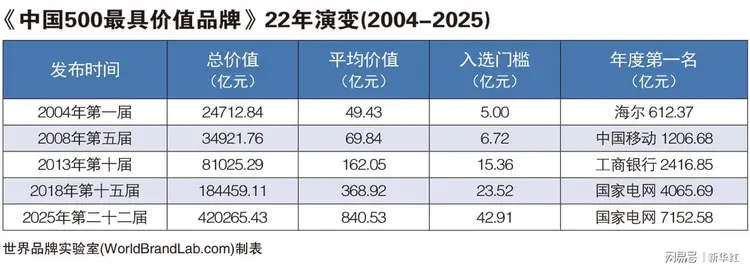 第22届世界品牌大会于6月18日在北京举行。主办方世界品牌实验室(World Brand Lab)发布了2025年《中国500最具价值品牌》分析报告。在这份基于财务数据、品牌强度和消费者行为分析的年度报告中,国家电网以7152.58亿元的品牌价值,荣登本年度最具价值品牌榜首。占据榜单前五名的还有中国石油(6056.26亿元)、海尔(5735.17亿元)、中国工商银行(5717.82亿元)、华润(5325.36亿元),这些品牌已经迈进世界级品牌阵营。来自哈佛、耶鲁、剑桥、麻省理工学院、北京大学的管理大师们,共同出席了世界品牌大会并做主题演讲,并围绕“人工智能革命背景下的全球品牌战略与数字供应链管理”的主题,与现场600位企业家和经理人互动研讨。