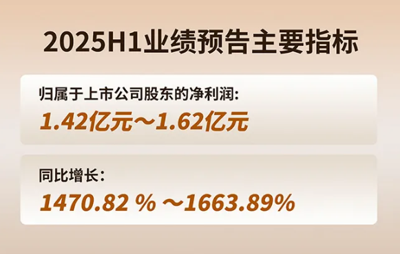 翰宇药业6月30日晚间发布的业绩预告显示,2025年上半年公司预计实现归母净利润1.42亿至1.62亿元,同比增幅高达1470%-1664%。