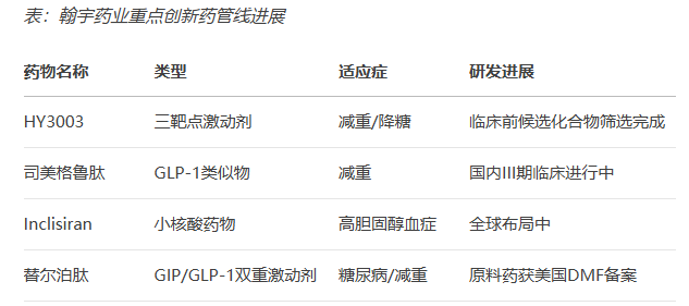 创新三靶点激动剂HY3003:采用“硅基多肽芯片+AI算法技术”筛选,已完成临床前候选化合物筛选。