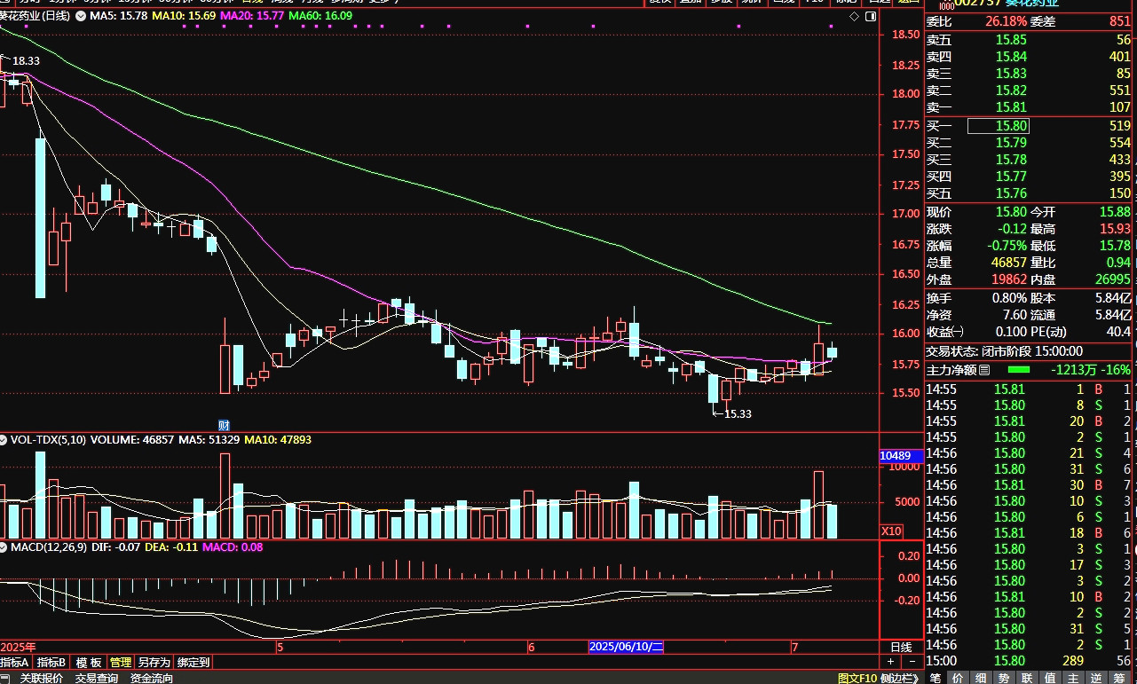 从6月23日的15.33元到现在的15.80元,6天上涨,3天下跌。近20日主力成本15.78元,60日压力位16.09元,支撑位15.44元。