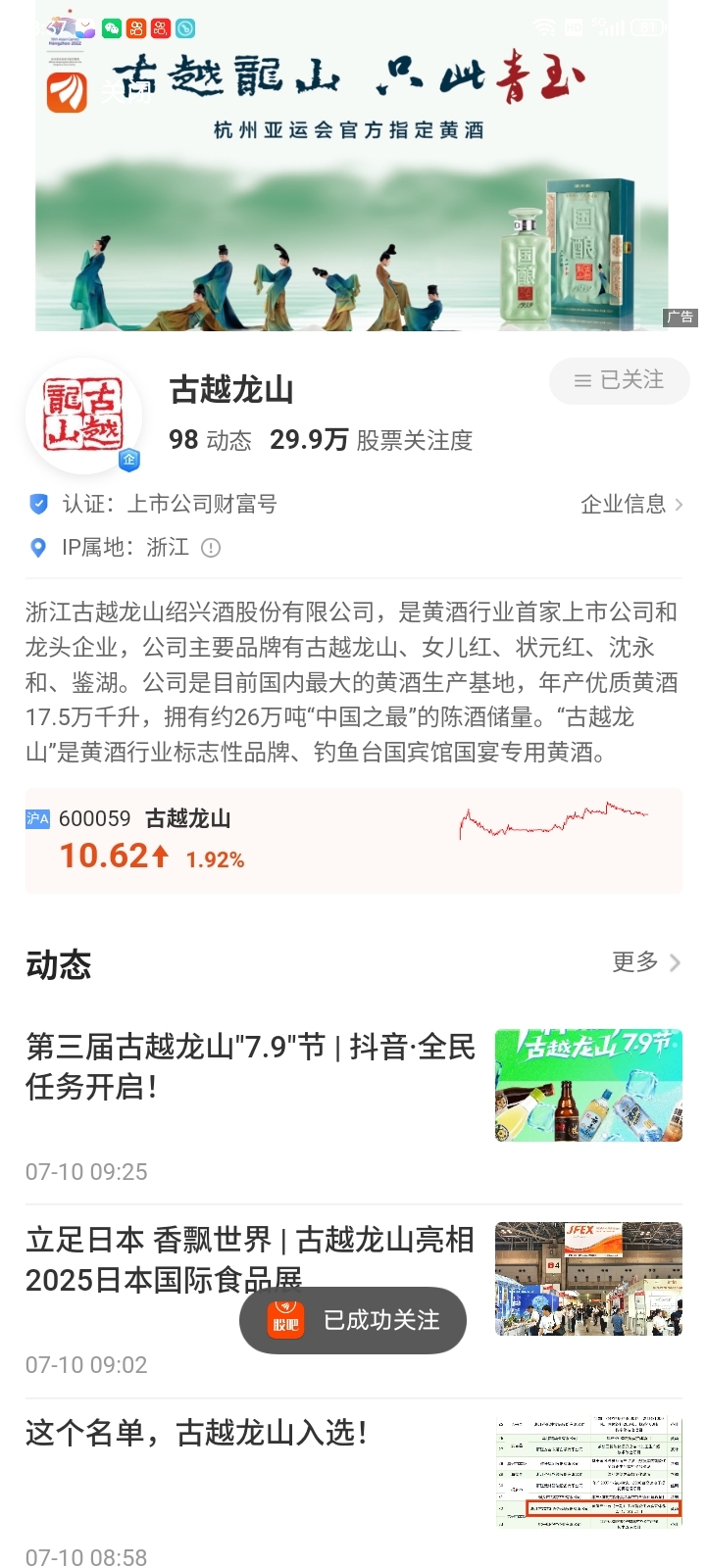 在消费升级与文化自信崛起的背景下,黄酒这一承载千年历史的传统品类正迎来价值重估。作为黄酒行业首家上市公司及"亚洲品牌500强"唯一入选企业,古越龙山(600059)以"文化赋能+场景适配"战略为抓手,推动黄酒从地域特产向国民级文化饮品跃迁,成为观察行业变革的重要风向标。