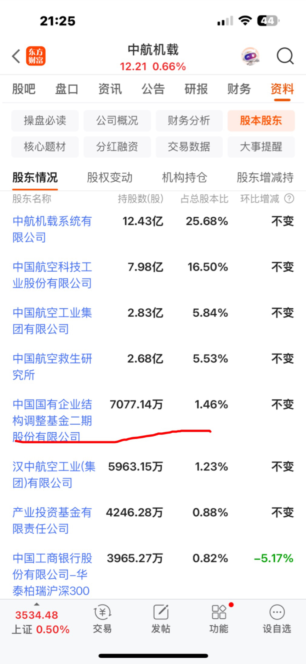 $中航机载(SH600372)$ 中航电子和中航电机合并成为中航机载,重组后股价估值是十四块多,融资五十亿每股也是十四快多,当时股价运行在二十左右,到目前中航机载股价十二块左右,期间主版块航空航天涨幅超一倍,现在的控股股东和中航沈飞拿的是十四块多的股,期间分红每股不到0.2元而持股成本却远超分红。也就是说控股股东等现在在站岗,五十亿元融资股份还在,持股超两年持股成本约在五十五亿元左右,持股成本在十六块到十七块之间。