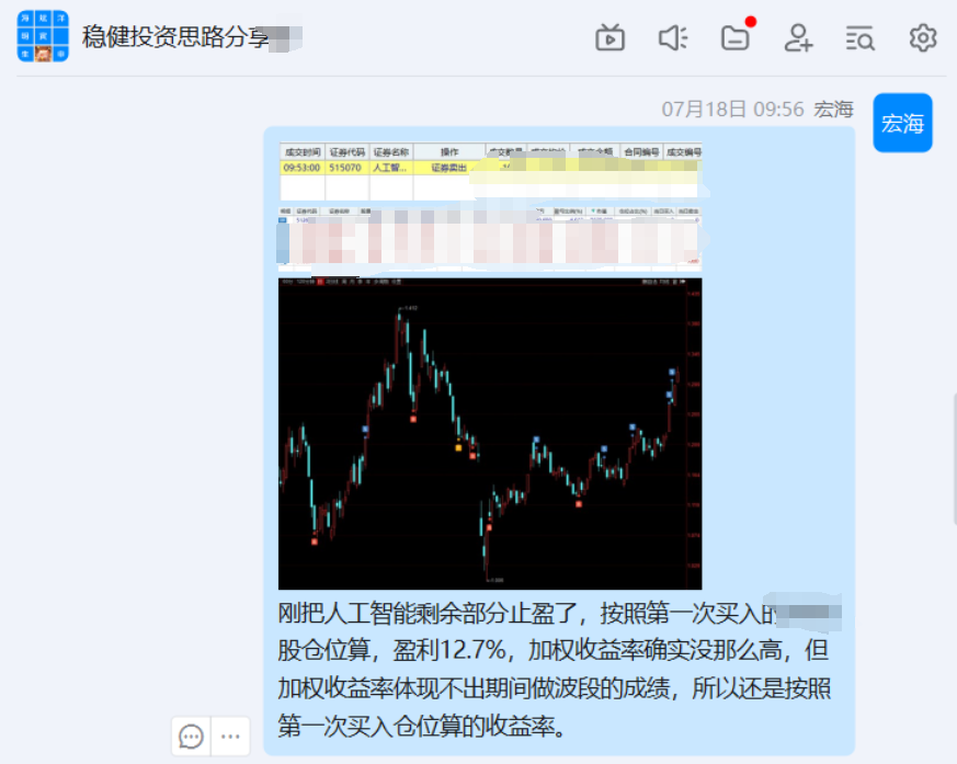 这票做起来真不容易,当时是在人工智能板块比较火的时候抄底的,抄底后3天,盈利7%没有卖,想等盈利10%以上再止盈的,结果一路下跌,还遇到了关税战,最大回撤达到26%,但经过我几次高抛低吸,目前还是盈利了12.7%,过程虽然曲折,但结果还是很满意的。