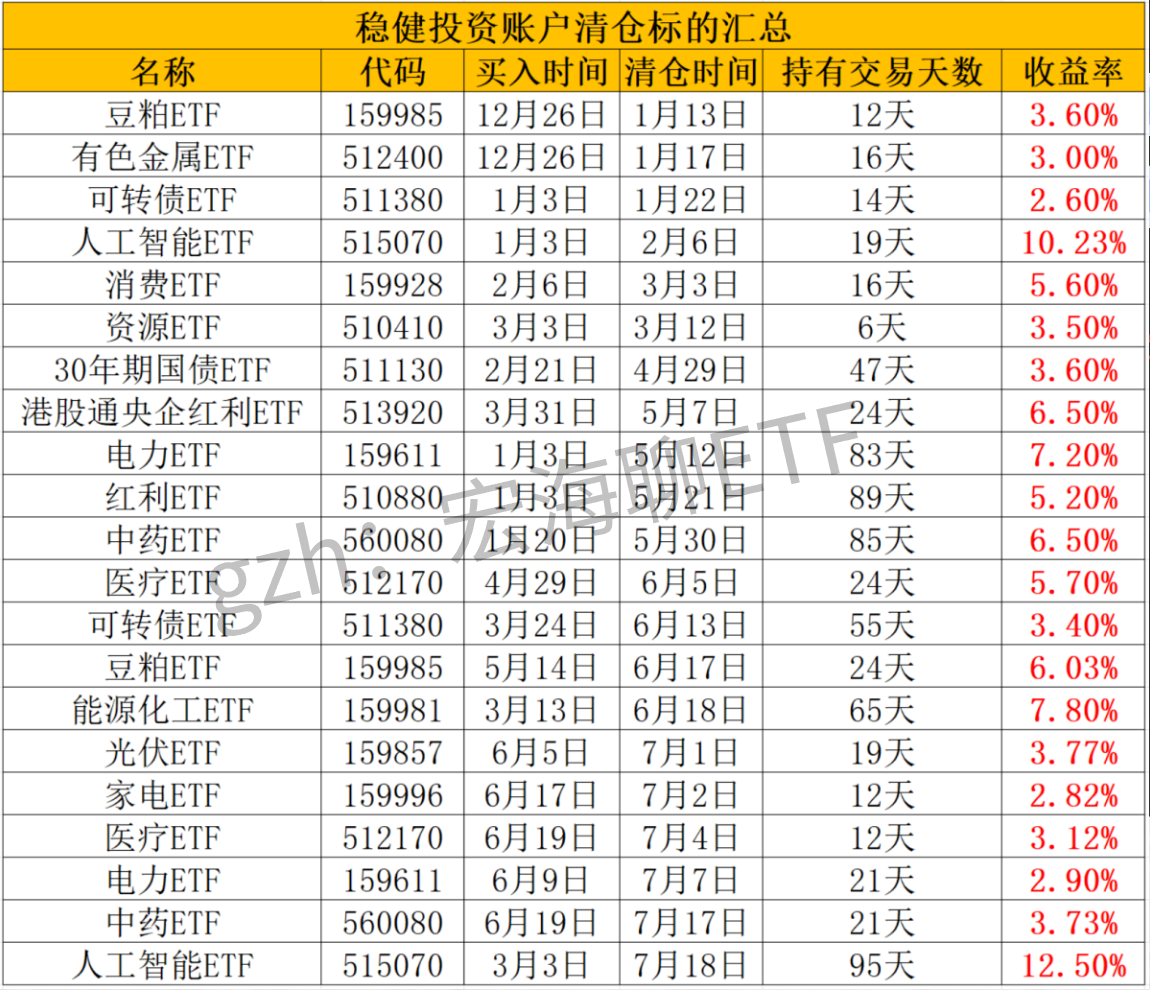 ETF稳健策略净值最近也是一路创新高,收益依旧非常稳健,周五把人工智能ETF止盈了,持有95个交易日,盈利12.7%。