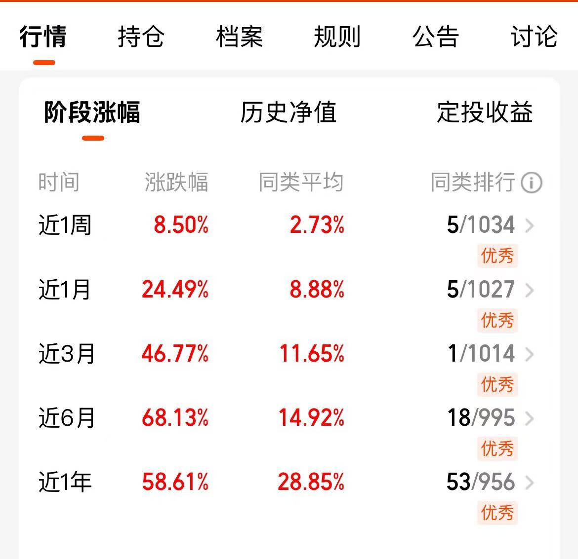 而红土创新医疗保健股票,凭借其优异的业绩表现和精准的布局,无疑是投资者把握这波行情的优质选择。这只基金表现十分出色。近 1 周涨幅 8.50%,近 1 月涨幅 24.49%,近 3 月涨幅 46.77%,近 6 月涨幅 68.13%,近 1 年涨幅 58.61%,今年来涨幅更是高达 64.07%。在同类基金排名中,近 3 月排名 1/1014,表现优异,充分展现了其在创新药领域的投资实力。