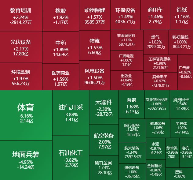 2. 领跌板块:军工、半导体、周期资源集体调整