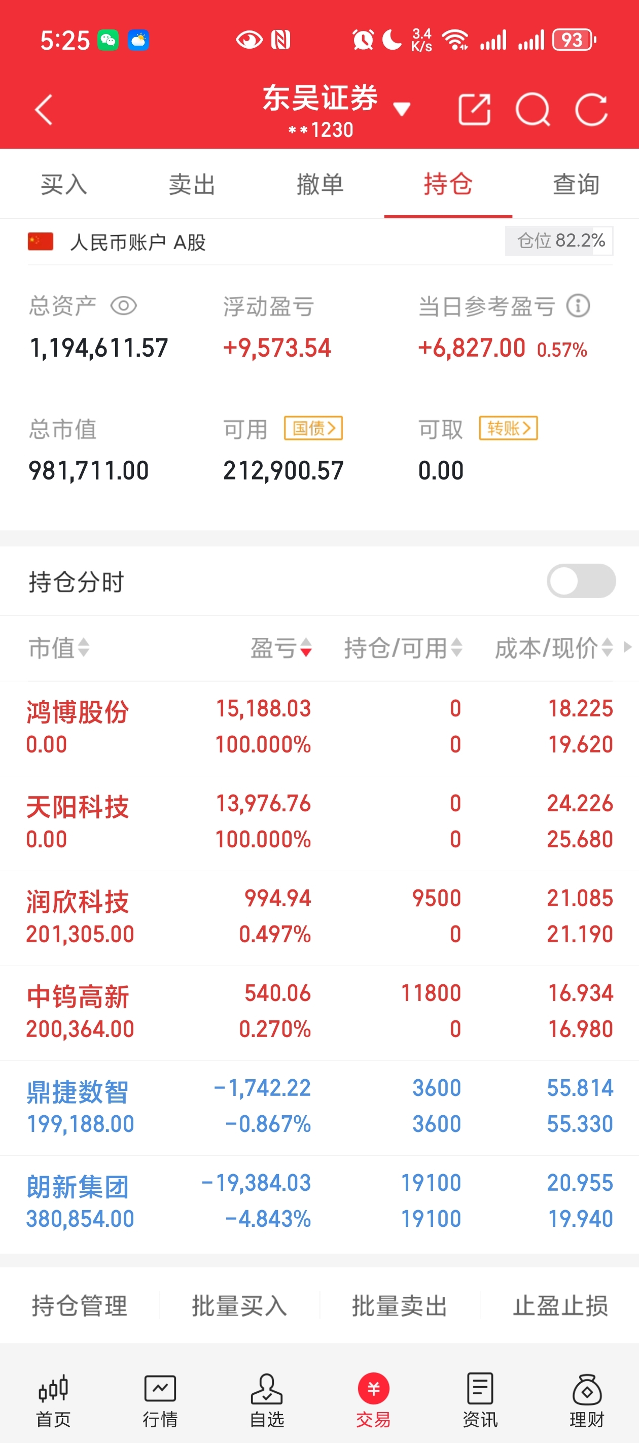 今日持仓:润欣科技,中钨高新,朗新集团,鼎捷数智